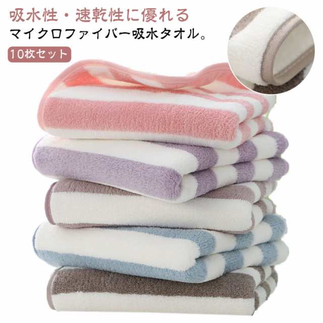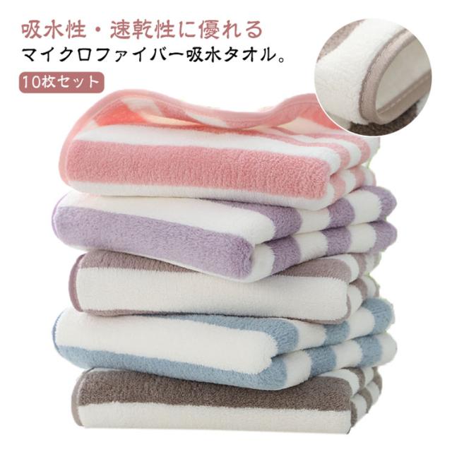 乾きやすい 10枚セット 吸水タオル ふんわり 厚手 フェイスタオル ボーダー柄 マイクロファイバー 吸水 速乾 抗菌防臭 ふわふわ 業務用 柔らかい おしゃれ バスタオル タオル 春夏秋冬 大人用 タオル 通気性 厚手 家庭用 部屋干し 毛落ちしにくい 安い