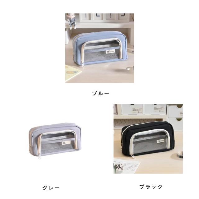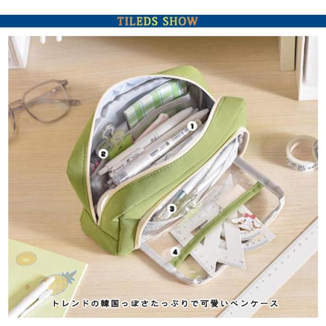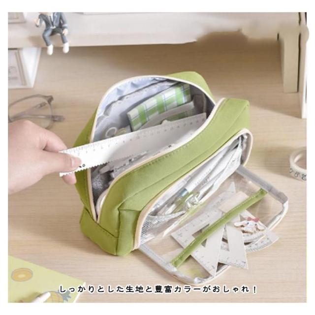 ツールペンケース 小物収納 ふでばこ 筆箱 筆入れ 筆箱 透明 大容量 クリアポケット付き ポーチ 中学生 高校生 筆箱 可愛い スリムポーチ 男の子 女の子 かわいい