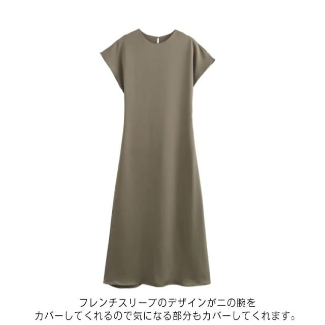 | 美しいツヤが特徴のサテン調素材のワンピース。 さらりとした心地よい肌触りで着心地快適。 フレンチスリーブのデザインが二の腕をカバーしてくれるので気になる部分もカバーしてくれます。 デイリー・通勤・結婚式・入学式・卒業式・入園式・卒園式など、大人の様々なシーンに対応する上品なワンピースです。 | |