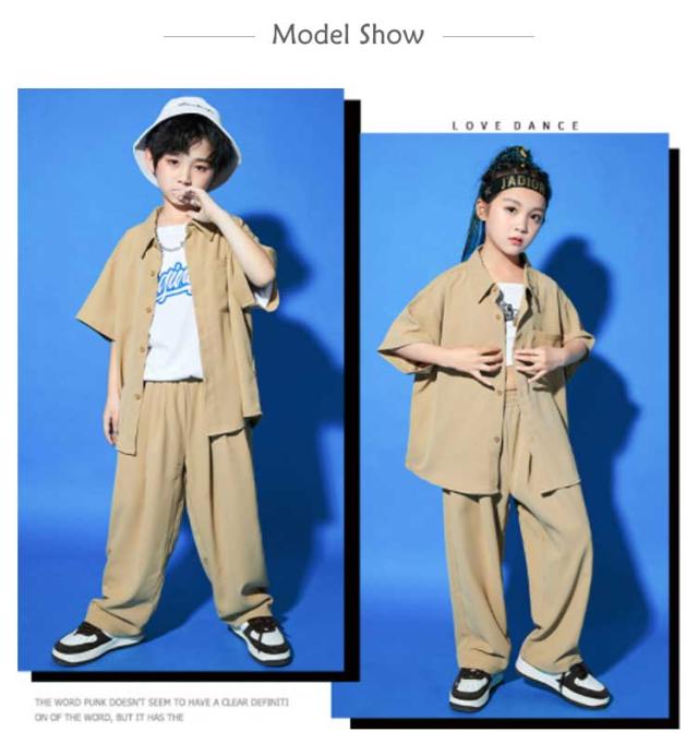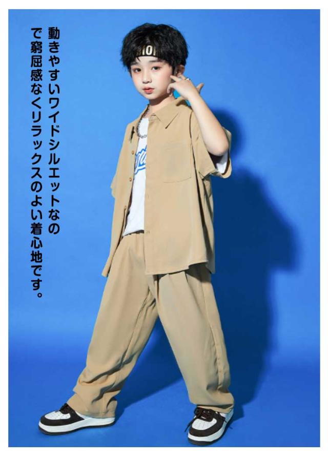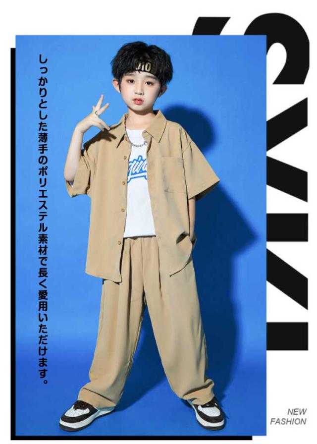 キッズ シャツジャケット 夏用 カジュアルスーツ ダンス衣装 ロング丈 男の子 セットアップ カーゴパンツ 3点セット ダンス衣装 女の子 演出服 茶色 舞台服 練習着 ストリート系 ジャズダンス かっこいい 普段着 子供服 110?180cm