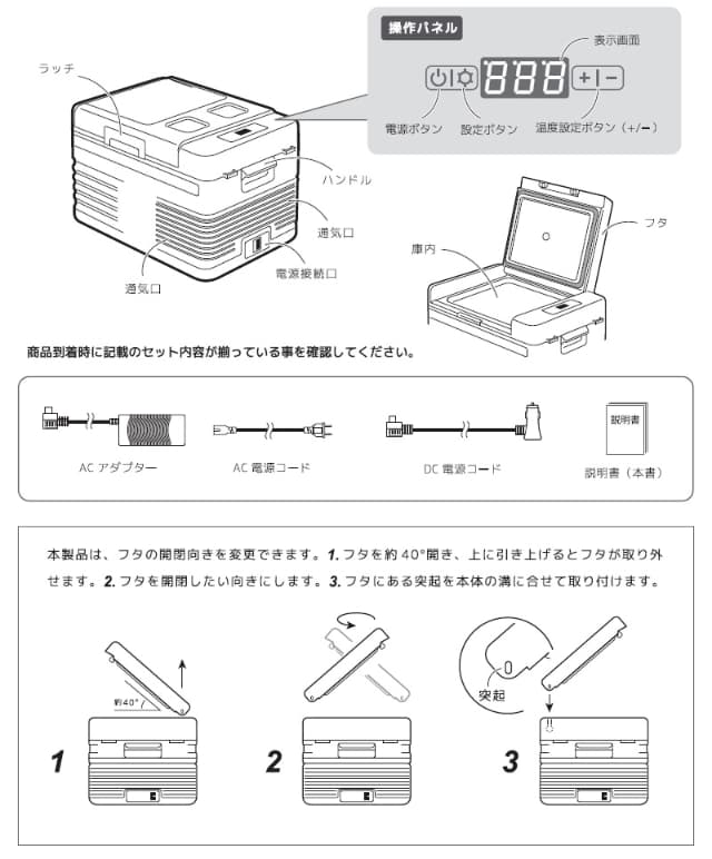 - 電源は家庭用AC、車載用DCの2電源対応。