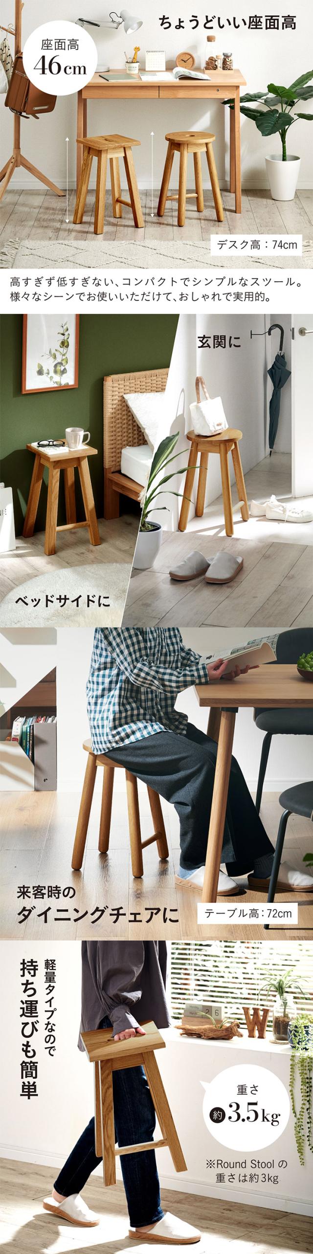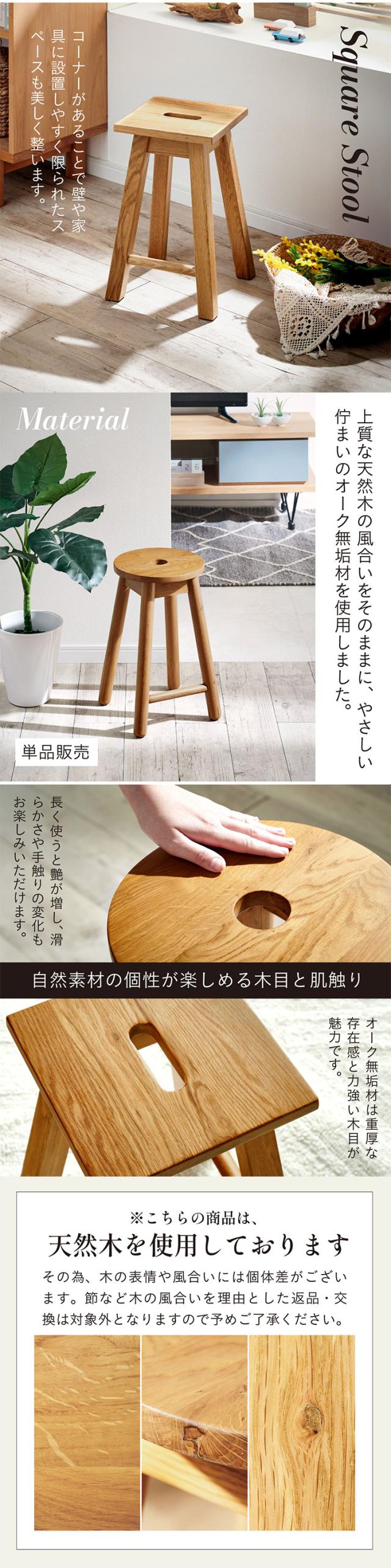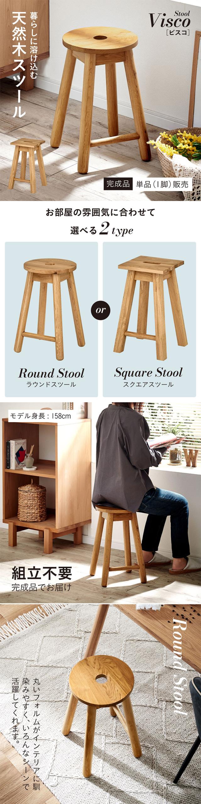 スツール おしゃれ チェア 1脚 完成品 円形 正方形 天然木スツール Visco(ビスコ) 2タイプ対応 オットマン 椅子 木製 軽量 ダイニングチェア 玄関 寝室 リビング ラウンドスツール スクエアスツール