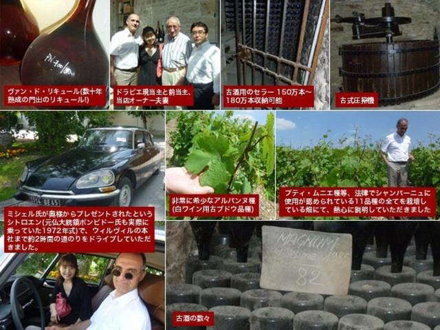 ドラビエ社は、シャンバンの中心の町ランスから遠く離れたウルヴィル村にあり、セラーは12世紀に建てられたものです。1615年から葡萄栽培を行い、1920年からシャンパンの生産を開始、’51年から自社で瓶詰め、’86年からネゴシアンを始めました。創業以来、家族経営を貫く名門中の名門です。自家葡萄園(ウルヴィルには40ha、全体で75ha)から非常に近い為、きめ細やかな注意を払い造っています。アサンブラージュもバランス良く香り高いドラビエスタイルを守っています。ルミアージュは手で行っています。