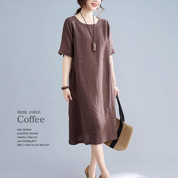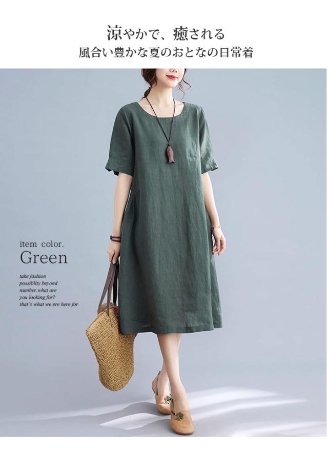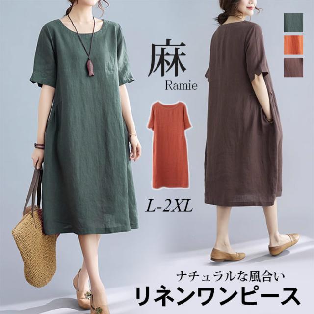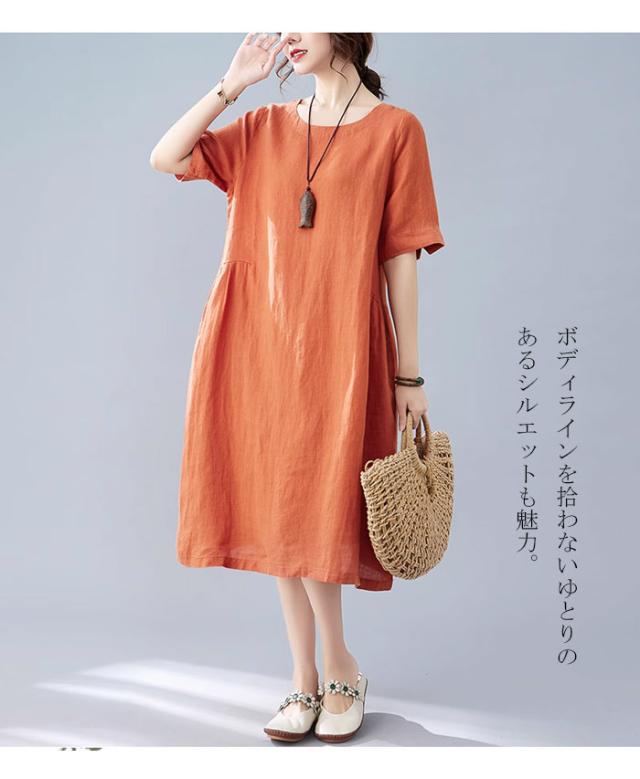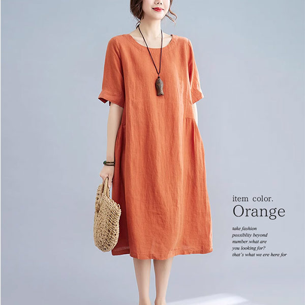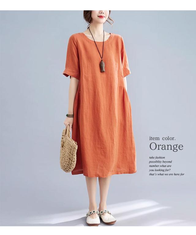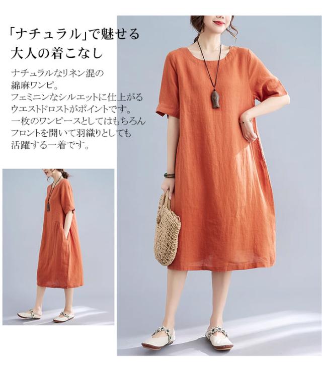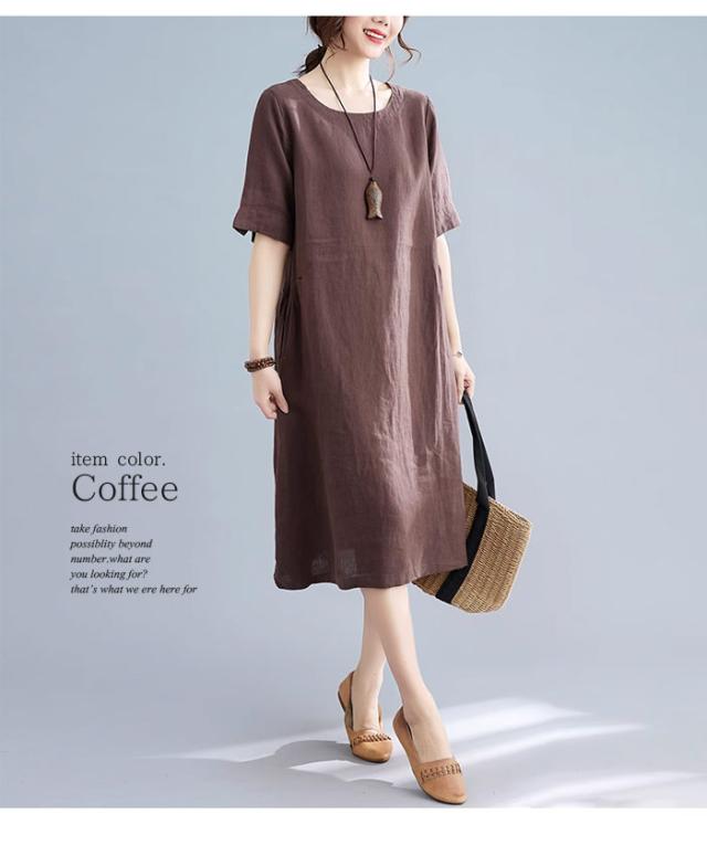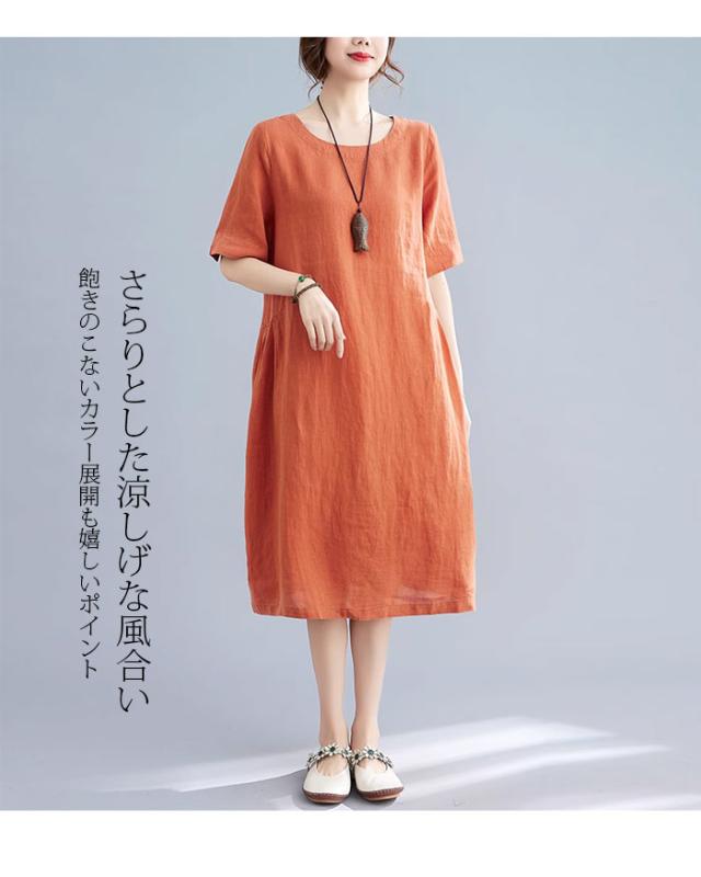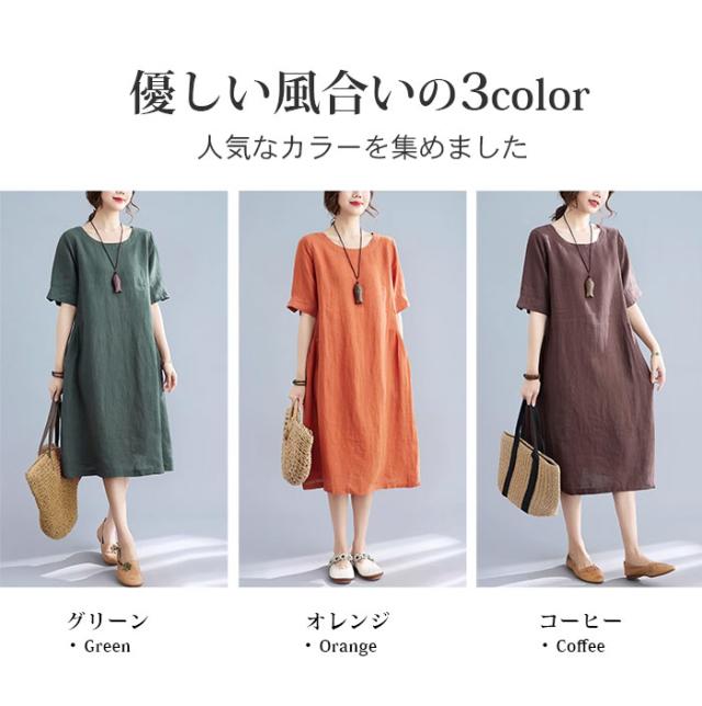 ロング ワンピース 綿麻 レディース ワンピース 超目玉商品 コーヒー オレンジ グリーン L XL 2XL