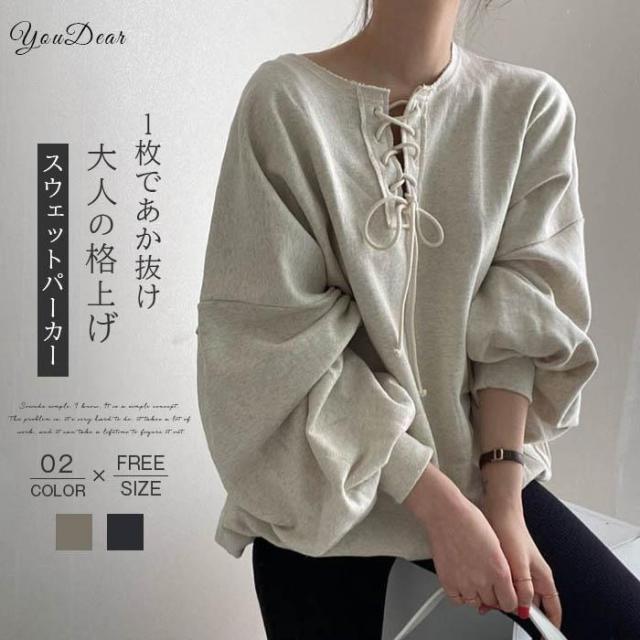 パーカー レディース スウェット トレーナー プルオーバー 長袖 無地 ゆったり カジュアル トレーナー パーカー ビッグシルエット 春秋