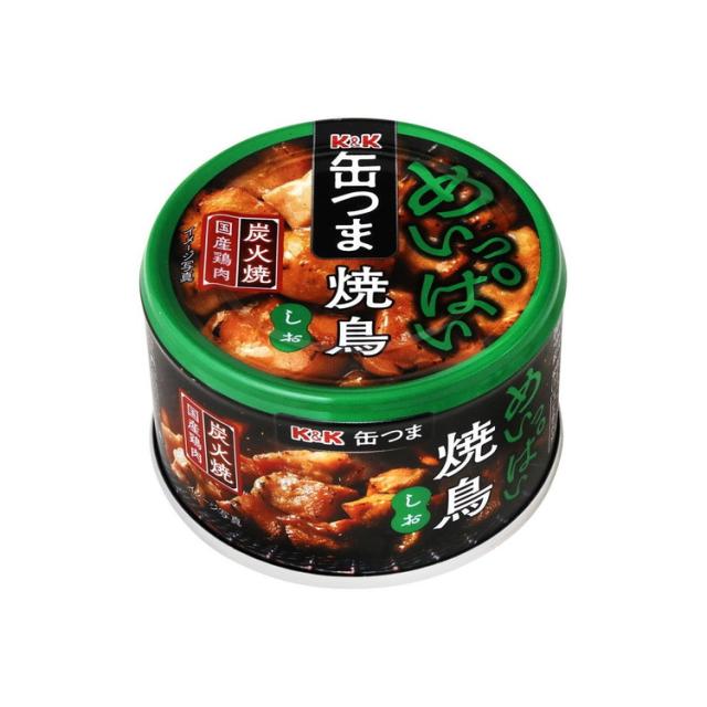 【単品6個セット】 K&K 缶つま めいっぱい焼鳥炭火焼 塩 135g(代引不可)【送料無料】