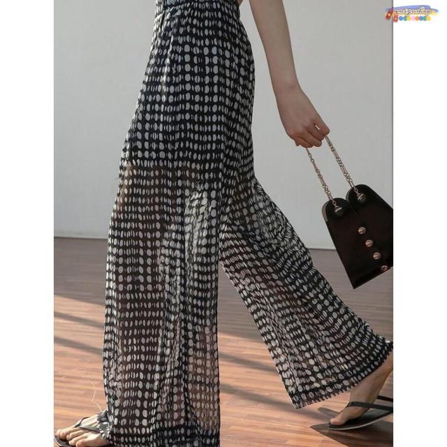 パンツ ワイドパンツ ドット 水玉 スカーチョ バギーパンツ ガウチョパンツ フレアパンツ 体型カバー 春 夏 秋 ロング レディース ボトムス ワイド ゆったり
