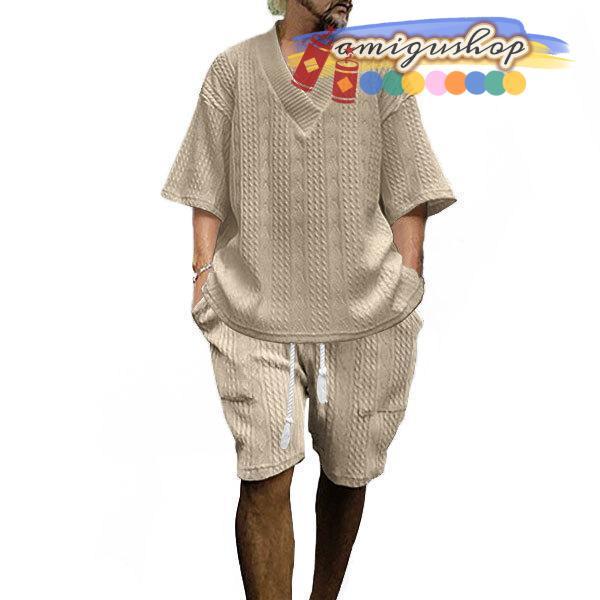 メンズ セットアップ サマーニット 上下2点セット トップス ショートパンツ スポーツウェア ルームウェア 部屋着 快適な着心地 ゆったり 春 夏 おしゃれ