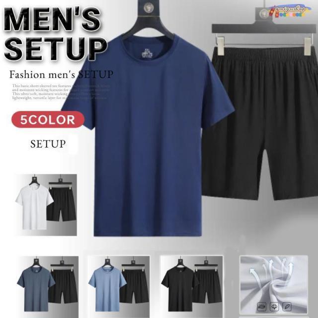 上下セット メンズ 接触冷感 ひんやり セットアップ 半袖 Tシャツ ショートパンツ ハーフパンツ スポーツウェア 無地 トレーニングウェア ルームウェア 夏 運動着 ランニング ジョギング
