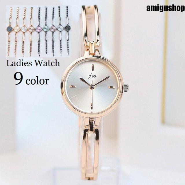 腕時計 リストウォッチ レディース ブレスレットウォッチ アナログ ラウンド 丸型 生活防水 華奢 女性用 クォーツ ゴールドカラー シルバーカラー