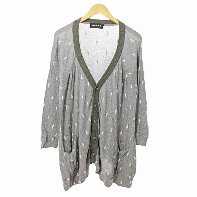 【中古】ゴム gomme ツリー柄 刺繍 コットン ニット カーディガン 長袖 薄手 M グレー 0619 IBO70 レディース