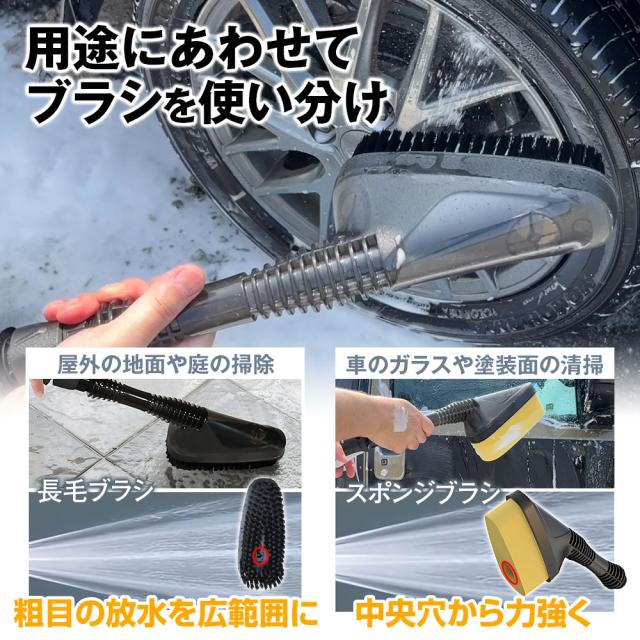 シャワーノズルに取付してどこでも洗車いただけます。スポンジブラシや洗剤用スプレーガンなど水道の無い場所でも洗車可能!