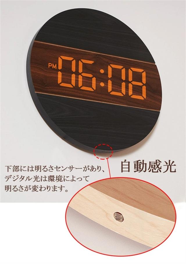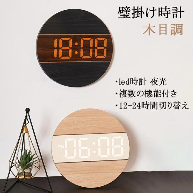 デジタル時計 時計 LED 壁掛け時計 掛け時計 木目調 静音 夜光 お洒落 夜光時計 北欧風 壁掛け 卓上 おしゃれ かけ時計 静か 非電波時計 自動点灯 壁掛けと置き プレゼント ギフト ウォールクロック 寝室