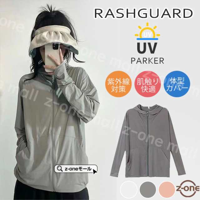 ラッシュガード UVパーカー 夏新作 送料無料 レディース 薄手 UVカット 紫外線対策 日よけ パーカー 長袖 フード付き 前開き フルジップ トップス アウター カーディガン 着痩せ ひんやり 冷感 速乾 日焼け防止 自転車 散歩 お出かけ プール 父の日