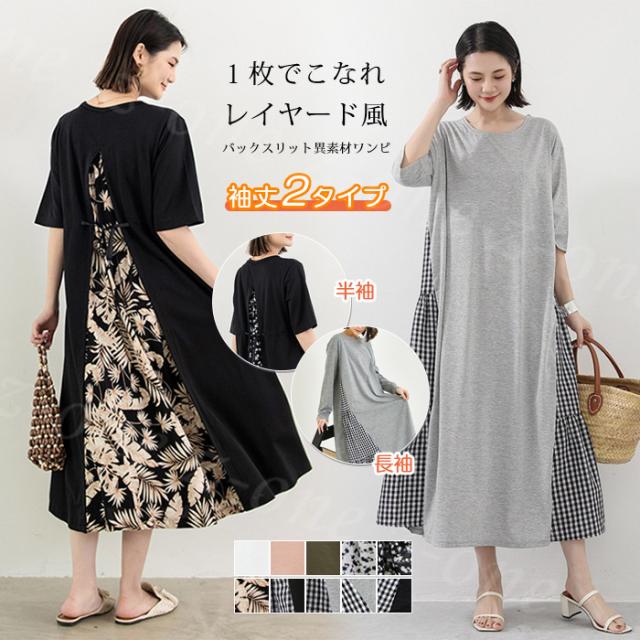 ワンピース 半袖 夏新作 送料無料 レディース ワンピース ロング丈 半袖 長袖 ノースリーブ ロンT 着痩せ ゆったり ロング丈 レイヤード風 20代 30代 40代 50代 60代 ワンピスター 体型カバー おしゃれ 通勤 父の日