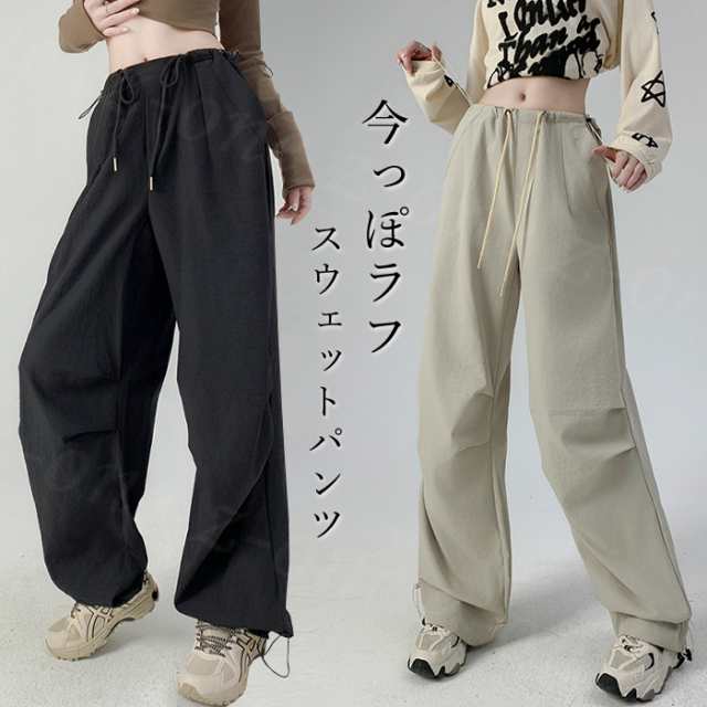 パンツ ワイドパンツ ドローコード付き レディース 夏 秋 春 ロング カーキ ベージュ ダークグレー ネイビー ライトグレー ホワイト ブラック 父の日