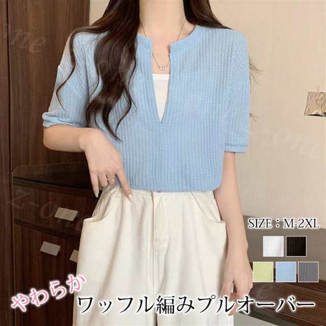 Tシャツ ワッフル編み レディース 夏新作 送料無料 トップス カットソー 半袖Tシャツ ベーシック 半袖 ゆったり ロング ロングT 大きいサイズ 体型カバー 無地 父の日プレゼント 父の日