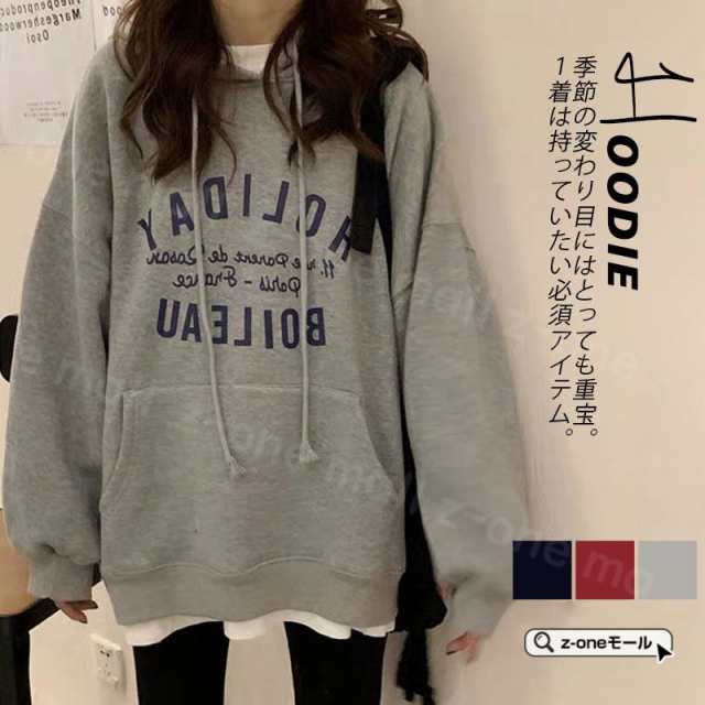 パーカー ロゴ付き レディース 大きめ トレーナー 長袖 プルオーバー フード付き ゆったり カジュアル アウター スウェット きれいめ 通勤 通学 仕事 父の日