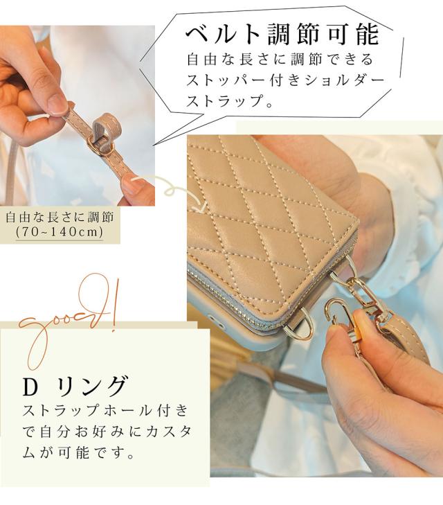 *ストラップホール付きで自分お好みにカスタムが可能です。自由な長さに調節できるストッパー付きショルダーストラップ。