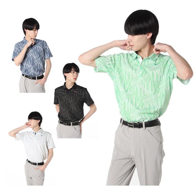 ミズノ ゴルフウェア ポロシャツ 半袖 メンズ 総柄プリント半袖共衿シャツ E2JAC062 MIZUNO