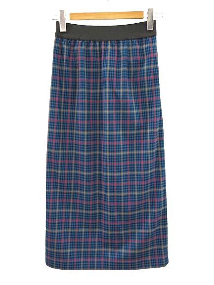 【中古】未使用品 シップス SHIPS チェック ウエスト ゴム スカート M ブルー タイト ロングスカート ボトムス