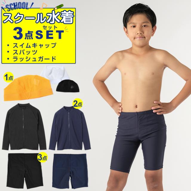 スクール水着 3点セット 幼児〜中学生 ボーイズスパッツ+メッシュキャップ+ラッシュ VQ470208M01