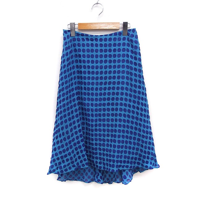 【中古】シビラ SYBILLA シルク100% ドット柄 フレア スカート ミディ丈 フィッシュテール L ブルー /FT6 レディース