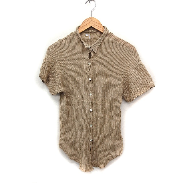 【中古】ケイビーエフ KBF アーバンリサーチ シャツ ブラウス チュニック ストライプ ステンカラー 半袖 ONE ベージュ