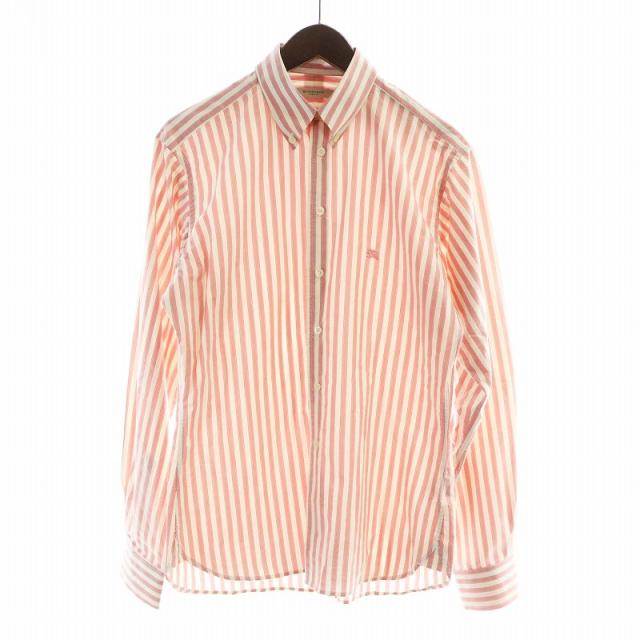 【中古】バーバリーズ Burberrys ステンカラーシャツ 長袖 ロゴ ボタンダウン 刺繍 ストライプ S 白 赤