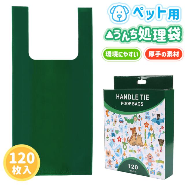 ウンチ袋 うんち処理袋 ビニール袋 ペット用 犬 猫 120枚入り 厚手 環境にやすい素材 生分解 漏れ防止 取っ手付き 手提げ 無地 シンプル