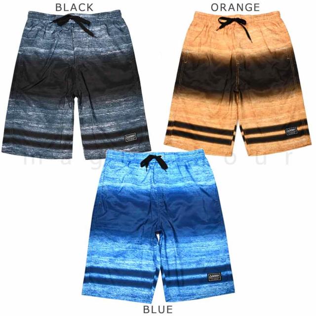 ◆ GERRY ジェリー メンズ 水着 海パン サーフトランクス インナーサポーター付き スイムパンツ ウォール グラデーション ボーダー ブラック オレンジ ブルー ◆
