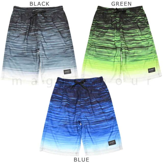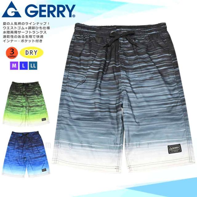 ◆ GERRY ジェリー メンズ 水着 海パン サーフトランクス インナーサポーター付き スイムパンツ ブラシ グラデーション ボーダー ブラック グレー ネイビー ◆