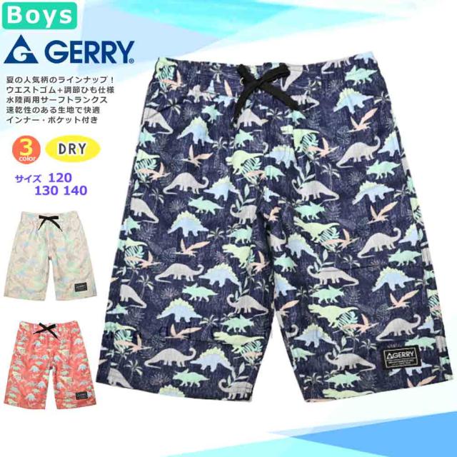 ◆ GERRY ジェリー ボーイズ 子供 水着 海パン サーフトランクス インナーサポーター付き スイムパンツ ベージュ 黒 紺 かいじゅう 恐竜 ◆