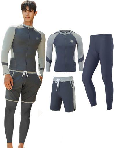 [AILITI] フィットネス水着 メンズ 3点セット 長袖ラッシュガード UVカットUPF50+ レギンス サーフパンツ 水陸両用 (グレー, 3XL)