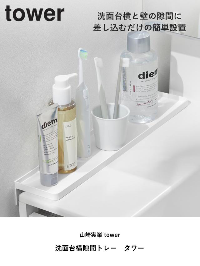 山崎実業 tower 洗面台横隙間トレー タワー ( 4903208101356 タワーシリーズ 洗面台横収納 台 隙間収納 ちょい置き トレー トレイ 洗面 すき間 ちょい置きトレー 差し込み 差し込むだけ 洗面所 ストッパー付き )