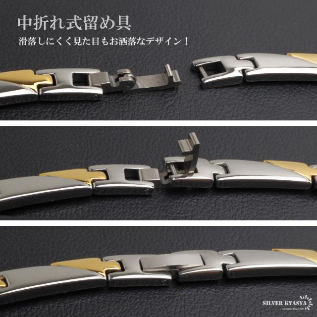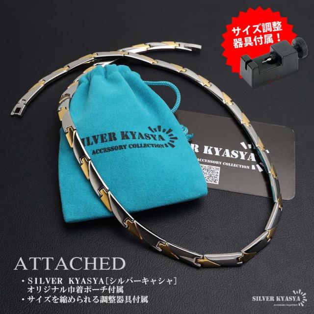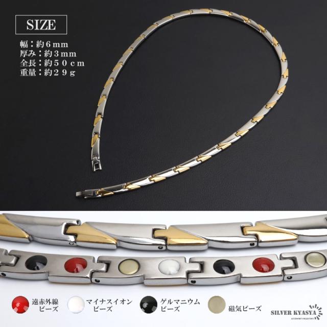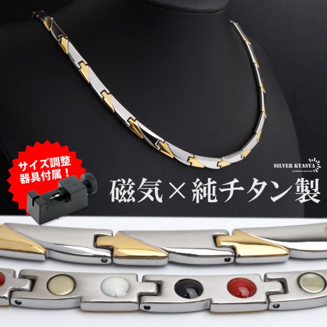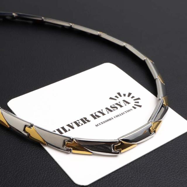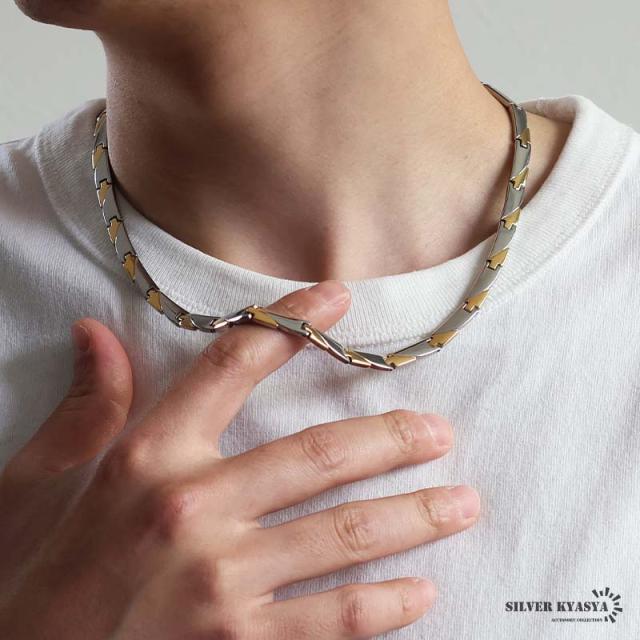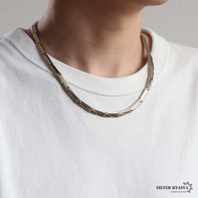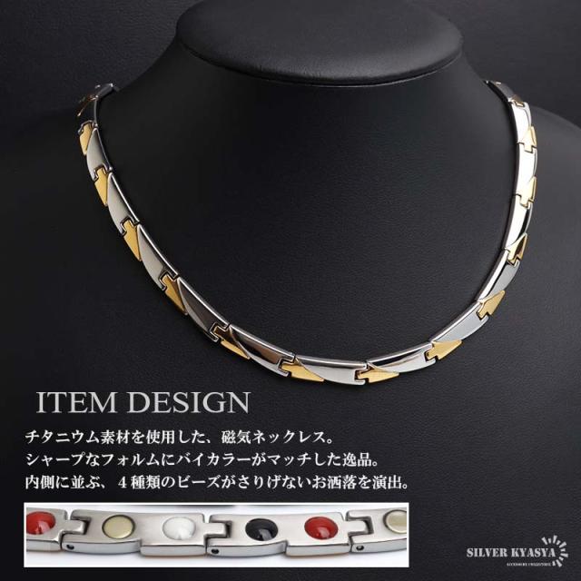 純チタン製 軽い 磁気ネックレス チタンネックレス メンズネックレス ゴールド シルバー 細身 お洒落 普段使い スポーツ 磁力 磁石 遠赤外線 マイナスイオン 調整器具 メタリック バイカラー コンビカラー 中折れ 男性 金アレ対応