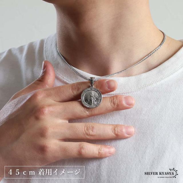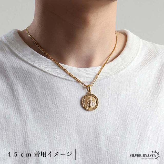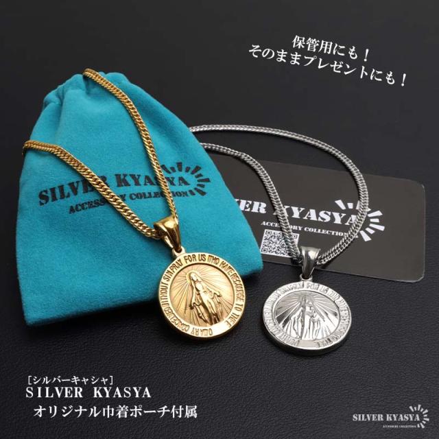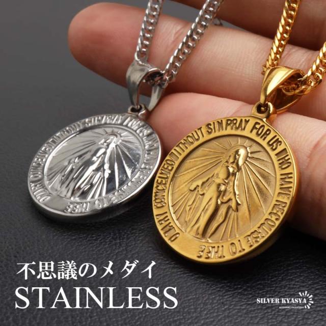 ステンレス マリアネックレス コインネックレス ペンダントネックレス メンズネックレス ゴールド 18KGP シルバー ダブル喜平 長さ3サイズ 不思議のメダイ 聖母 男性 金アレ対応
