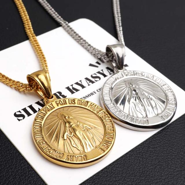 丁寧に彫り込まれた立体感のあるマリア像が魅力のネックレス。不思議なメダイと呼ばれ、アクセサリーの定番アイテムです。ステンレス製なのでつけっぱなしでも問題ありません!カラーは全2色からお選びいただけます。