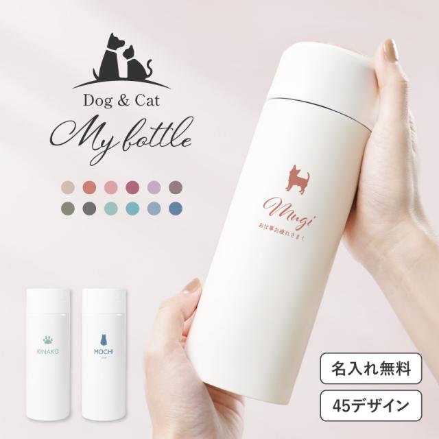 名入れ無料 シルエット入り ドリンクボトル 340ml 犬 猫 水筒 ペット 愛犬 愛猫 オシャレ ホワイト マイボトル 名入れ 名前入り 蓋付き 柄 保冷 保温 ステンレス 二重構造 持ち運び 洗いやすい フタ ふた 文字入れ ギフト プレゼント 誕生日 送料無料