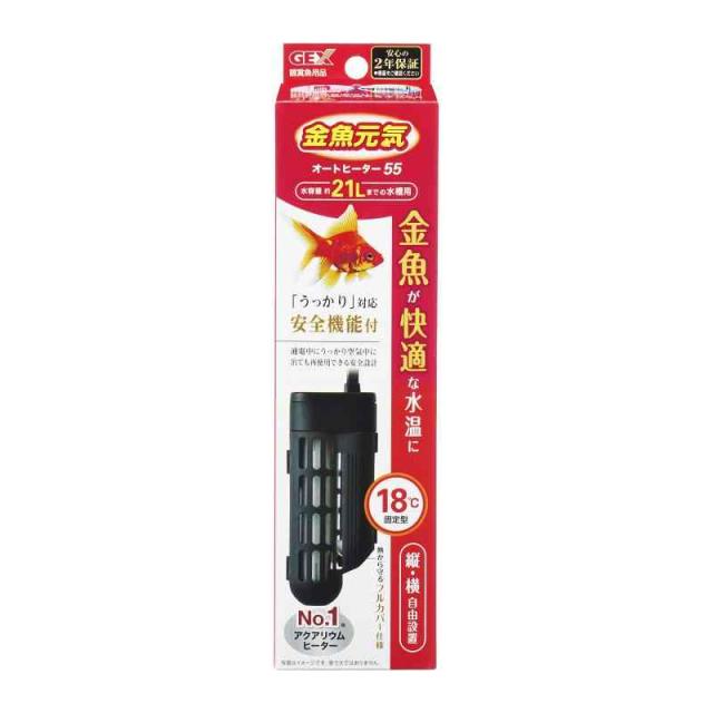 GEX 金魚元気 オートヒーター 55 18℃自動保温 縦横設置 安全機能付 SP規格適合 2年 約21L以下の水槽用 55W