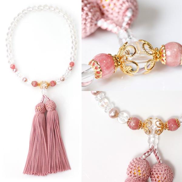 数珠 水晶 数珠 袋付き 京都 葬式 葬儀 成人式 母の日 結婚式 ハレの日 法要 源氏物語シリーズ 夕顔