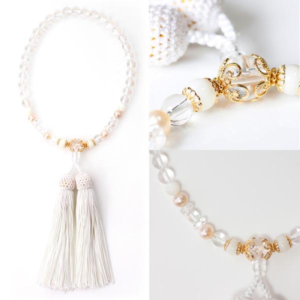 数珠 水晶 数珠 袋付き 京都 葬式 葬儀 成人式 母の日 結婚式 ハレの日 法要 源氏物語シリーズ 明石の君