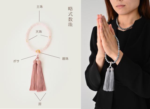 男性用数珠と女性用数珠に分かれており、「片手念珠」と呼ばれることもあります。