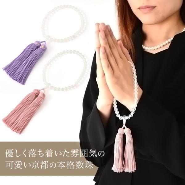 子供数珠 霧水晶 数珠 袋付き 京都 葬式 葬儀 法事 法要 京都のおしゃれな本格念珠 数珠袋付き!