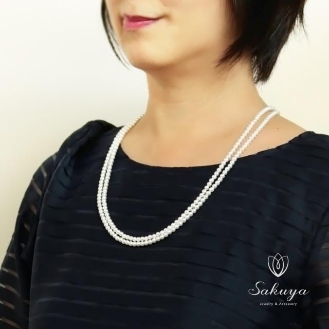 パールネックレス2連 真珠 母の日 結婚式 ロング フォーマル プレゼント パールネックレスロング 結婚 パーティ 4mm 120cm ピアス イヤリング