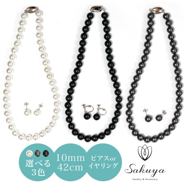 パール ネックレス 冠婚葬祭 母の日 結婚式 ハレの日 真珠 お葬式 フォーマル プレゼント 人気 結婚 パーティ ピアス イヤリング セット 10mm 42cm