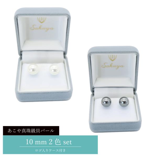 貝パール イヤリング ピアス 2色セット ケース付き ホワイト シルバーブラック 冠婚葬祭 卒業式