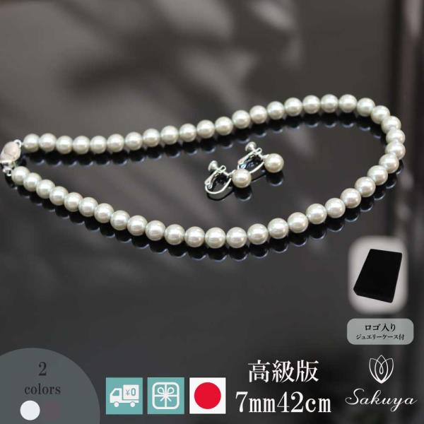 パールネックレス 冠婚葬祭 50代 40代 30代 真珠 母の日 結婚式 フォーマル カジュアル ハレの日 お葬式 結婚 パーティシリコン入り 高級版 7mm 42cm セット