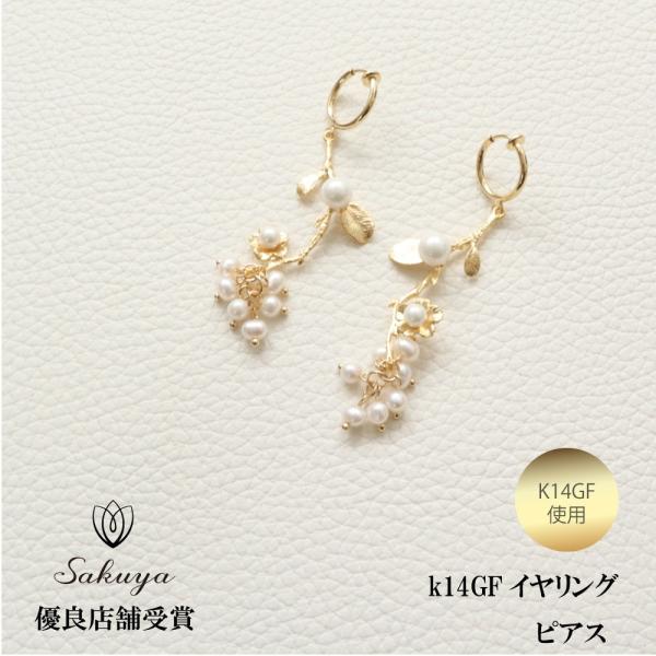 ピアス レディース シルバー 14kgfゴールドフィルド 金属アレルギー パールブドウ 大人 プレゼント 人気 ホワイトデー パーティドレス 結婚 パーティ