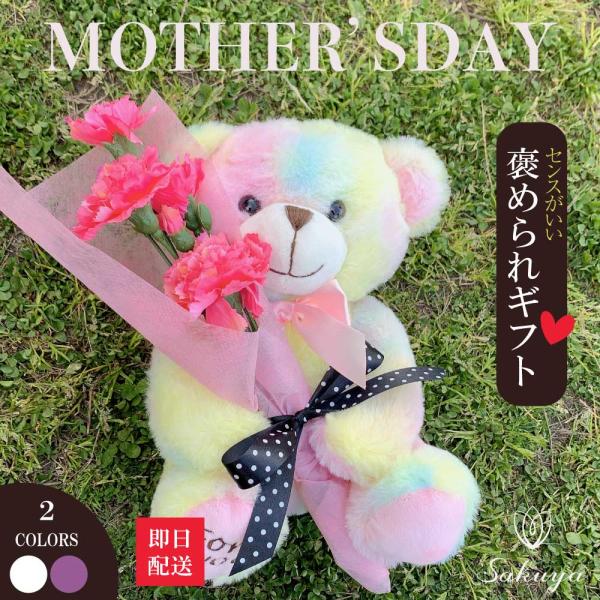 母の日限定!カーネーションを抱っこしたくまちゃんです。